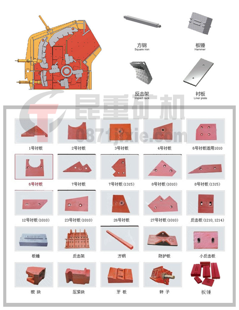 反擊式破碎機易損件示意圖: