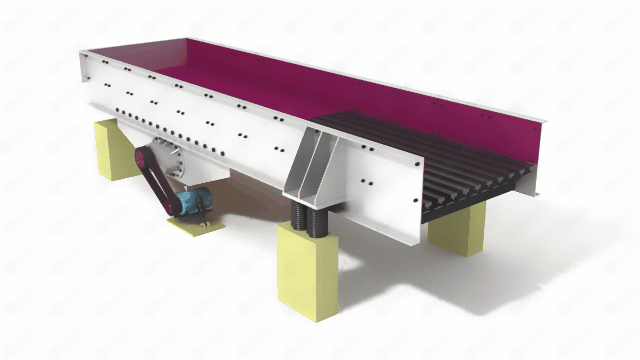 ZSW激振器振動(dòng)給料機(jī)在生產(chǎn)流程中可把塊狀、顆粒狀物料從貯料倉中均勻、定量、連續(xù)地給到受料裝置中去,在砂石生產(chǎn)線中可為破碎機(jī)械連續(xù)均勻地喂料,并可以對物料進(jìn)行粗篩分。